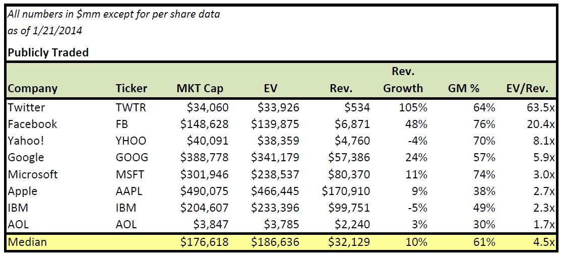 What is really interesting is when we look at the value of both business based on current public comps (I list the comps on the second tab that I used to find the median EV/TTM Rev). Applying the current market multiples to both business, you will see that in first few years, the enterprise value of the businesses are about equal, but in the last few years, the term business’s enterprise value is higher.